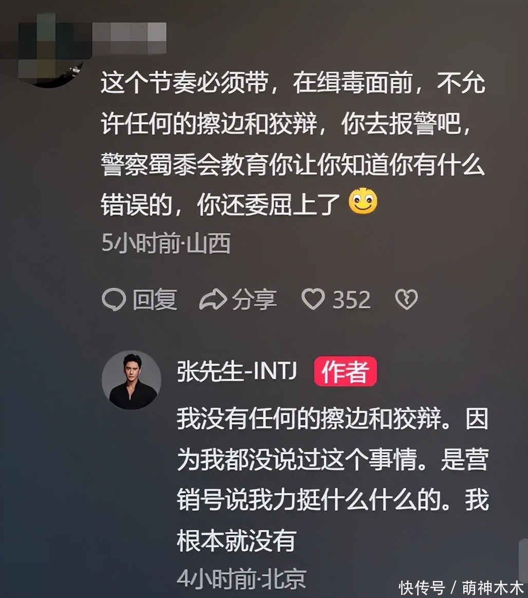 而理性的网友还在评论区跟他分析问题,称在缉毒面前不允许任何擦边和狡辩,他则甩锅称都是营销号给他预设立场,他不支持毒贩。犀利的网友则直接讽刺他才是真的指鹿为马,直言他的行为已经在挑战公序良俗,不违法但触及了道德底线。