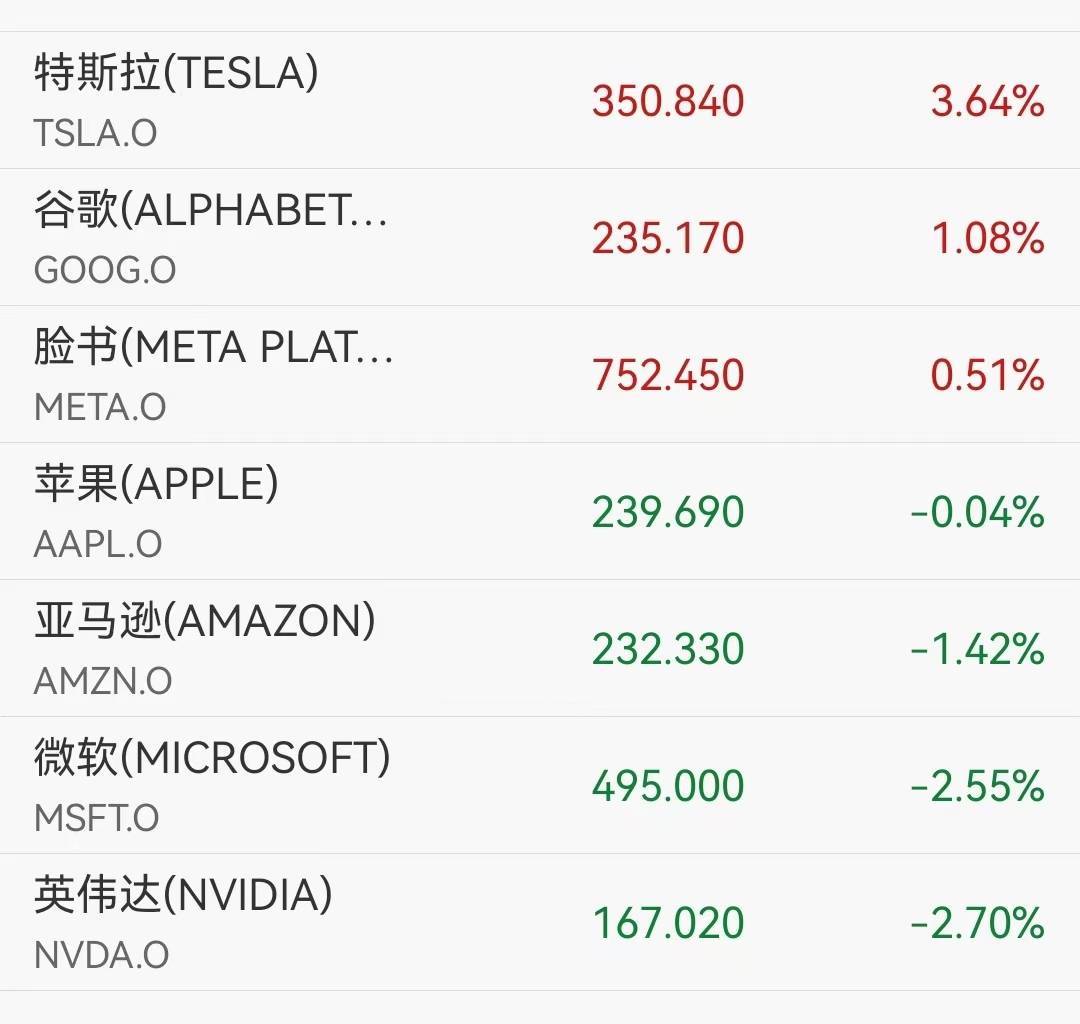 然而,英伟达下跌2.7%,部分因投资者担忧AI领域竞争加剧。大型科技股涨跌不一:谷歌A股和C股分别涨1.16%和1.08%,连续多日创新高;微软跌2.55%,苹果跌0.04%,亚马逊跌1.42%。太阳能板块也走强,阿特斯太阳能涨15.04%,Sunrun涨10.65%。